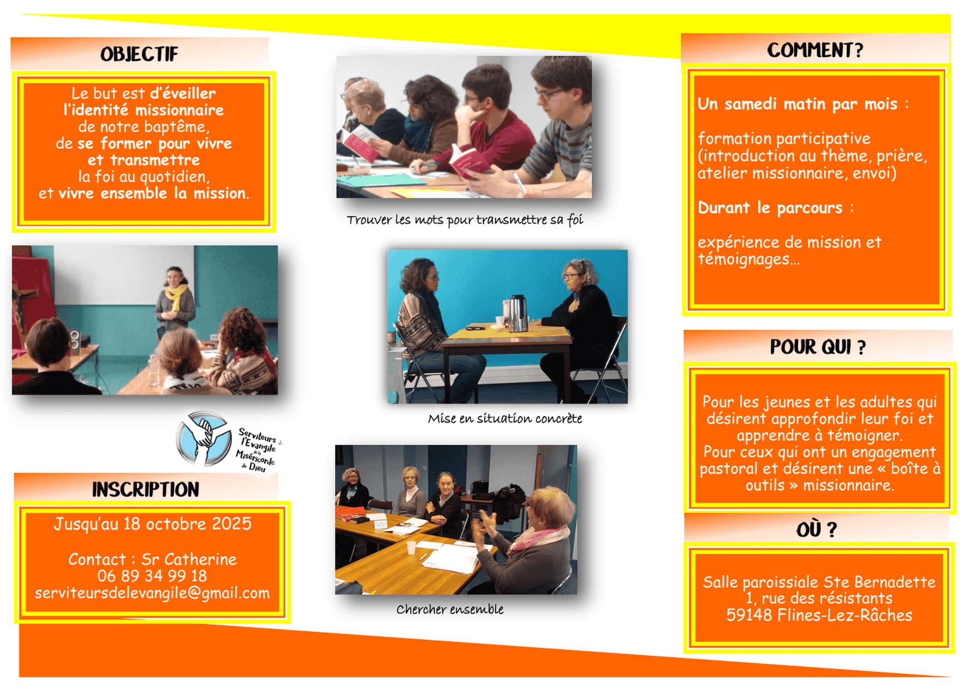 Sr Catherine (Serviteurs de  l'Evangile de la Miséricorde de Dieu) : 06 89 34 99 18