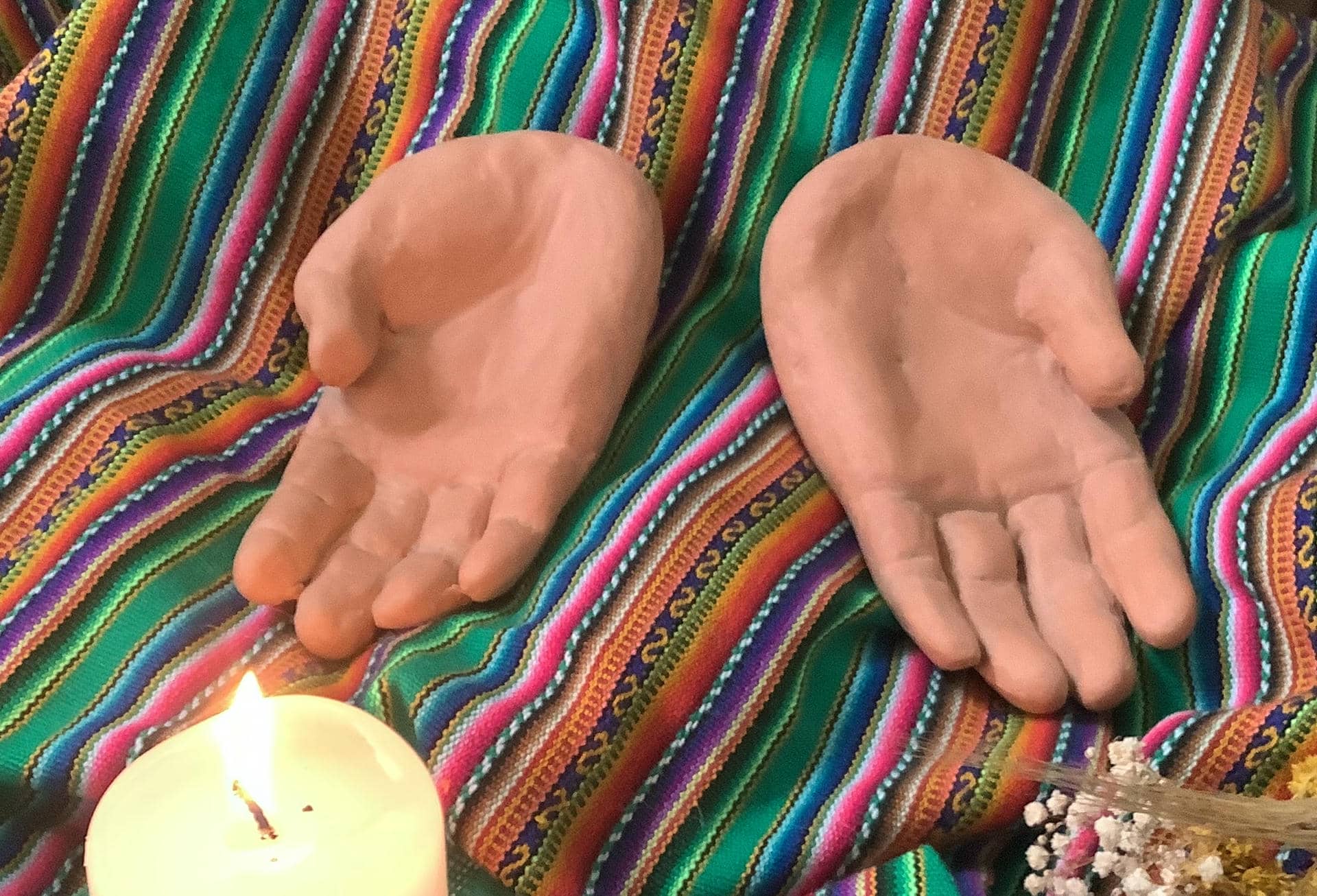 Aujourd'hui, je vais laisser Anne Marie vous parler, depuis le Pérou, de ce que signifie vivre les mains ouvertes, ces mains d'argile qu'elle a fabriquées. Et je vous précise qu'elle a une très mauvaise vision, conséquence d'une maladie dégénérative appelée rétinopathie pigmentaire.