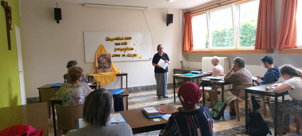 Les trois missionnaires, Céline, Catherine et Anne, se sont relayées pour nous donner des pistes. Elles nous ont amenés à la contemplation de Jésus qui, dans les Évangiles, ne cesse d'aller à la rencontre des personnes. Et elles nous ont fait prendre conscience d'un profond renversement : ce n'est pas tant nous qui cherchons Dieu par nos propres forces mais tout au contraire, c'est Dieu lui-même en premier qui pose son regard sur nous, comme il l'a fait sur Zachée par exemple ou sur la femme adultère. Zachée cherche à voir Jésus, mais c'est Jésus qui provoque la rencontre en l'interpellant. La femme adultère ne dit pas un mot, n'est plus capable d'appeler à l'aide, et c'est Jésus qui s'adresse à elle, jusqu'à s'accroupir pour être à sa hauteur.